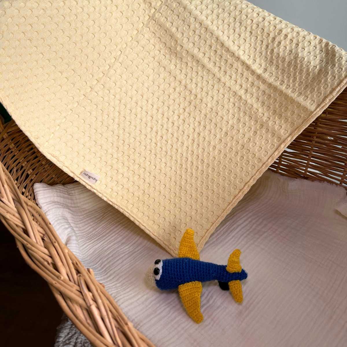 %100 pamuk kumaşla üretilen bu örtü, nefes alabilir yapısıyla bebeğinizin cildine zarar vermez, terletmez.