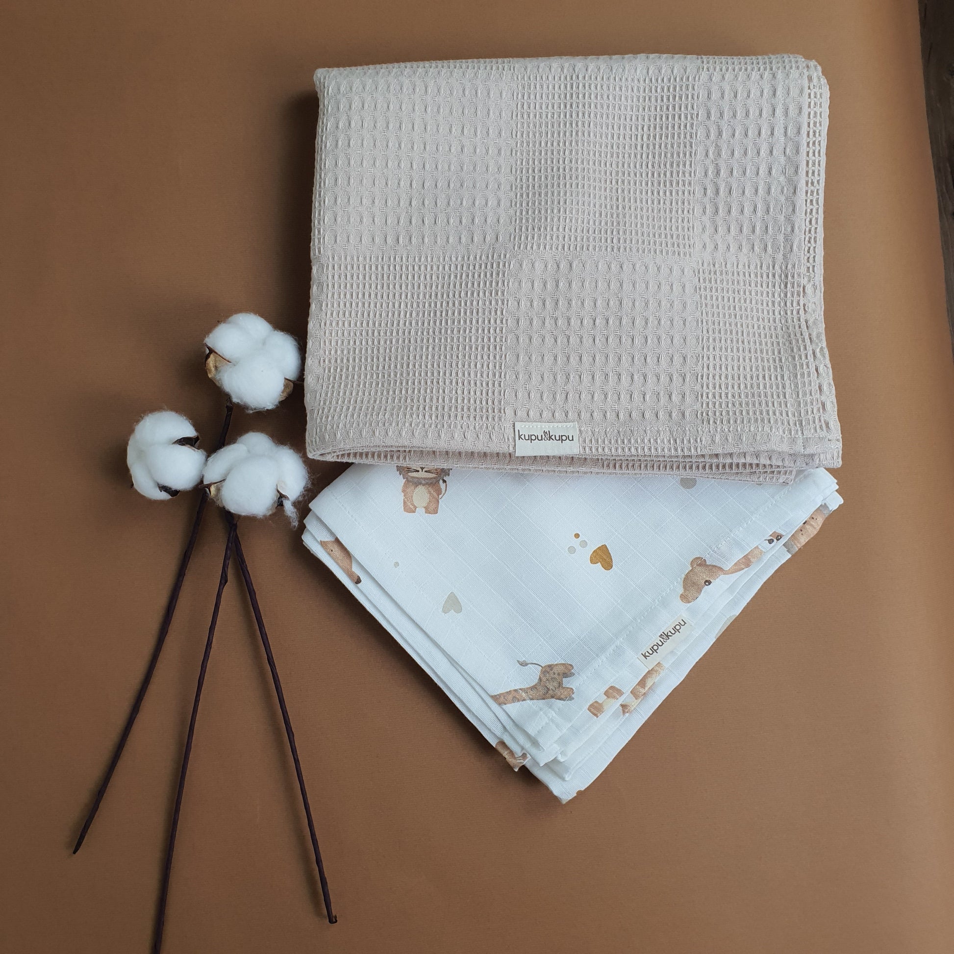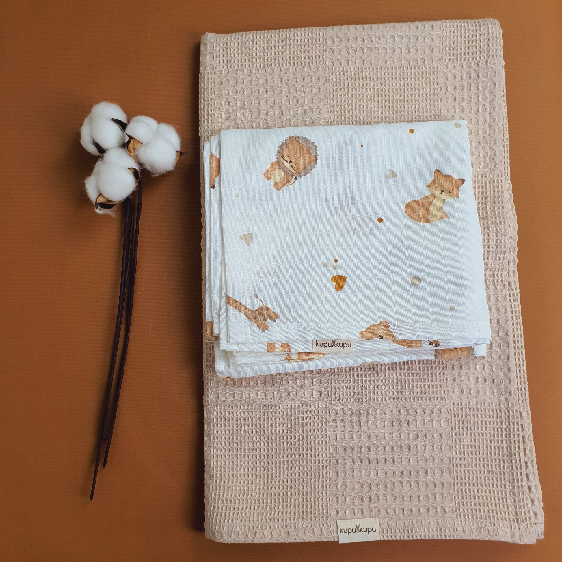 Waffle Pike & Aslan Baskılı Müslin Örtü Seti