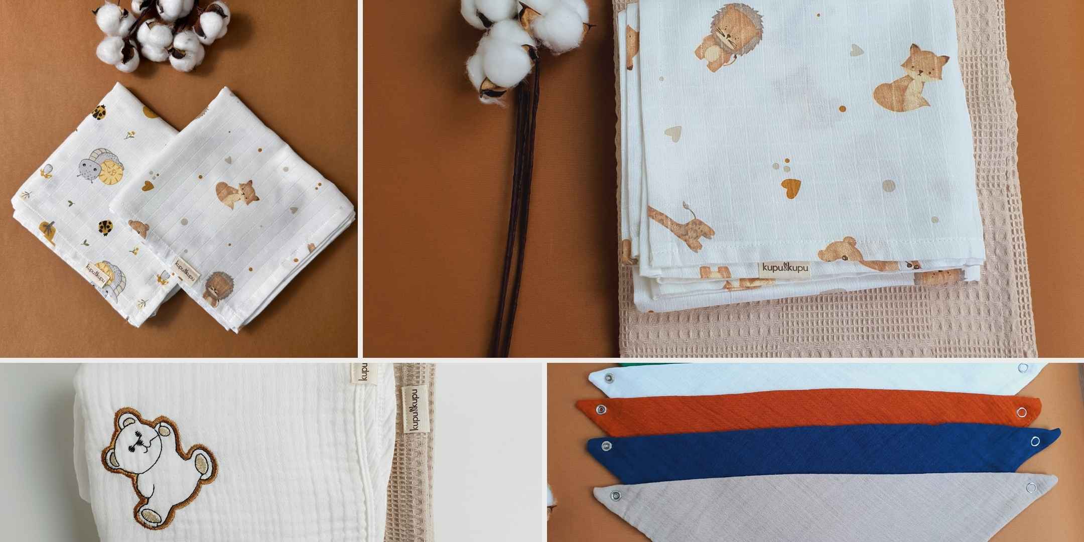 Kupu&Kupu ürünlerinde yalnızca OEKO-TEX® ve GOTS sertifikalı, %100 pamuk kumaşlar kullanılır.