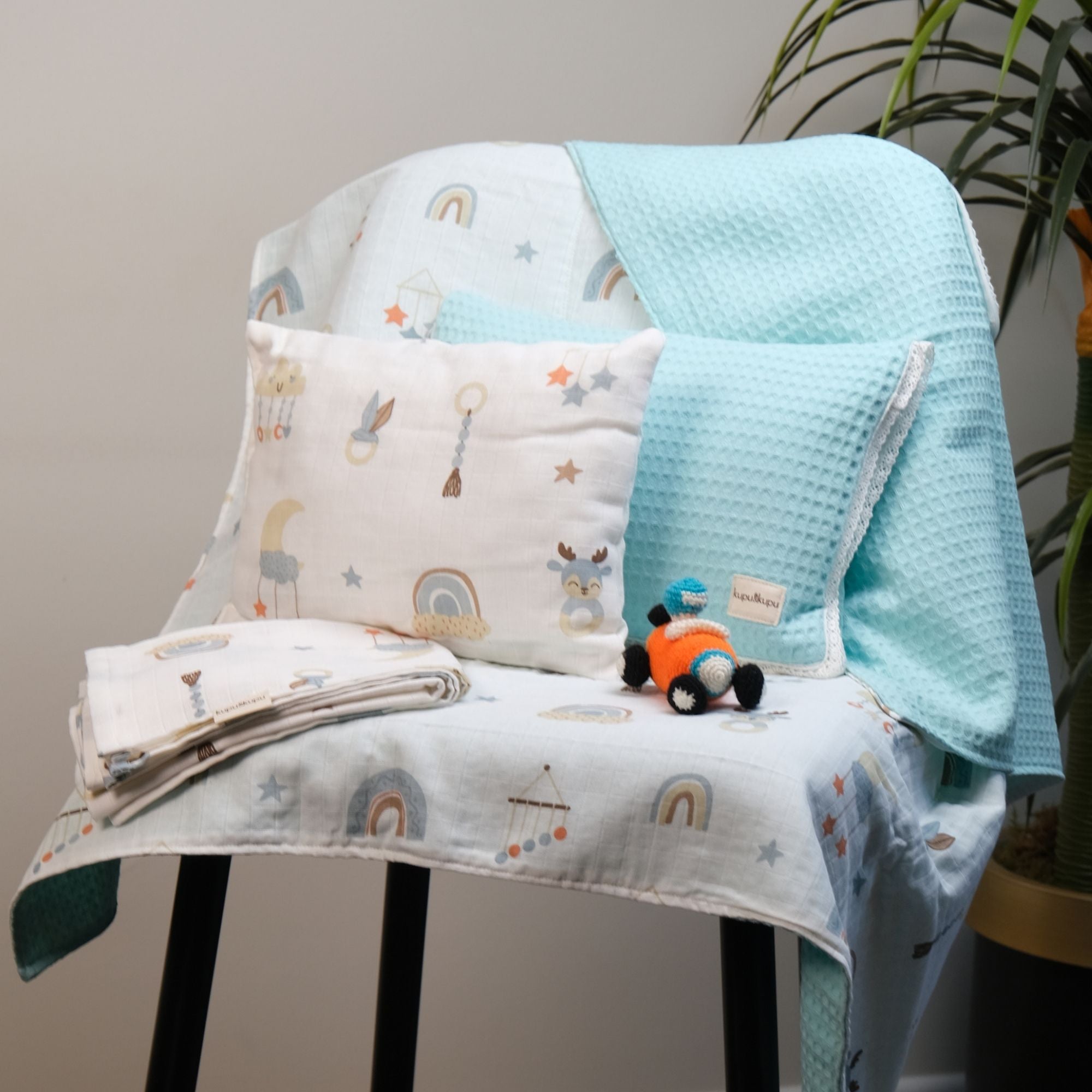 Süper FiyatWaffle Pike & Aslan Baskılı Müslin Örtü Seti