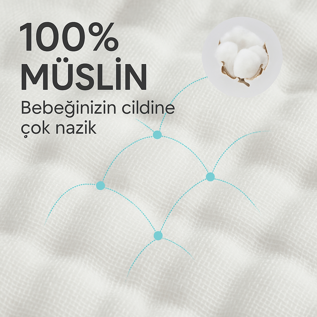 Produced with 4-layer 100% cotton muslin fabric, this cover does not harm your baby's skin or cause sweating, thanks to its breathable structure.